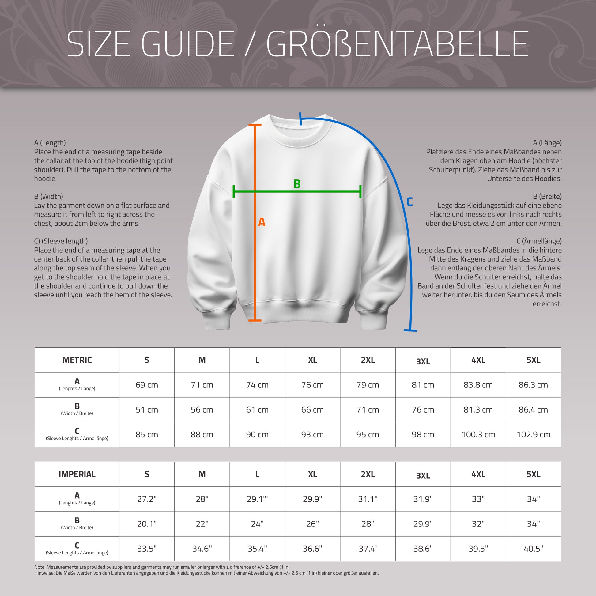 Bitte messe vor dem Kauf unbedingt ein vergleichbares Kleidungsstück aus und orientiere Dich an unseren Größentabellen.