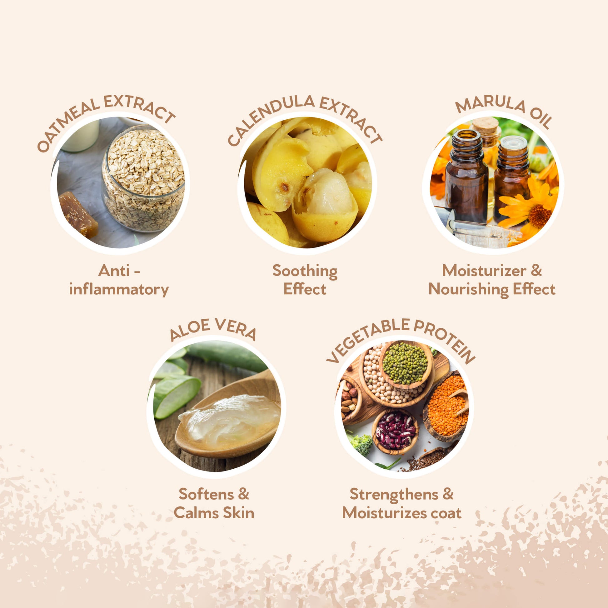 • Kostbares Marula‑Öl macht das Fell seidig weich und liefert Antioxidantien.